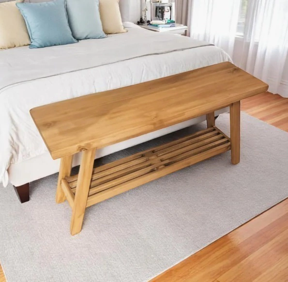 BANCO PIE DE CAMA ENCERADO y LUSTRADO DE 120 CM